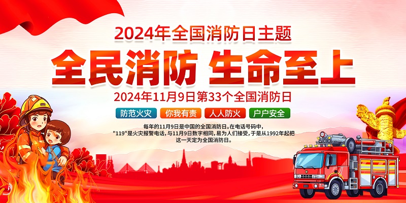 今年11月9日是第33個(gè)全國(guó)消防日11月是全國(guó)消防宣傳月活動(dòng)主題為全民消防、生命至上