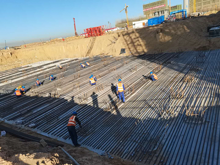 由勝幫科技股份有限公司EPC總承包、中化三建公司施工的陜煤集團(tuán)榆林化學(xué)有限責(zé)任公司1500萬(wàn)噸/年煤炭分質(zhì)清潔高效轉(zhuǎn)化示范項(xiàng)目粉煤熱解裝置兩器框架筏板基礎(chǔ)經(jīng)過(guò)36小時(shí)的艱苦奮戰(zhàn)順利完成了全部混凝土澆筑工作。該筏板基礎(chǔ)鋼筋量417噸,混凝土量2950方,最大厚度為2.8米,屬于大體積混凝土工程。自樁基工程施工完成后,針對(duì)該區(qū)域周邊場(chǎng)地條件受限,原始地貌高出場(chǎng)平正負(fù)零1.2米…