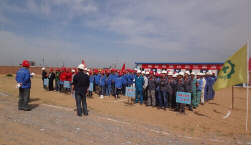 2014年6月12日早上9點(diǎn)30分,內(nèi)蒙古建豐項(xiàng)目業(yè)主、監(jiān)理、總包方及各施工分包全體人員在我總包方材料堆場(chǎng)共同參加了本年度首次消防演練。此次消防演練活動(dòng)由內(nèi)蒙古建豐項(xiàng)目業(yè)主方及施工分包方澄合分公司共同組織舉辦,旨在強(qiáng)化安全意識(shí)、查隱患、保安全、深入開展安全月活動(dòng)。 圖為業(yè)主劉書記演習(xí)指導(dǎo)工作活動(dòng)中由業(yè)主方在指定區(qū)域扮演被困群眾、我總包方扮演救援小組出動(dòng)擔(dān)架搶救…
