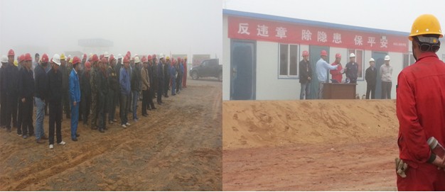 建豐項(xiàng)目周安全例會(huì) ---現(xiàn)場(chǎng)報(bào)道(2014年4月12日早7點(diǎn)) 2014年4月12日周六早上7點(diǎn),是建豐項(xiàng)目安全周例會(huì)的日子。和往常一樣,各施工單位,總包單位,監(jiān)理單位,業(yè)主單位均出席參加。會(huì)議由安全經(jīng)理馮杰主持,會(huì)議共分五個(gè)議程:第一項(xiàng):檢查各施工單位與會(huì)人數(shù)與實(shí)際上報(bào)人數(shù)、入場(chǎng)培訓(xùn)是否一致,并對(duì)此進(jìn)行考核。 與會(huì)人員及安全檢查評(píng)分…