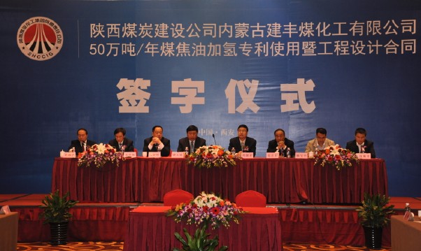 熱烈慶賀陜西煤炭建設(shè)公司內(nèi)蒙古建豐煤化工有限公司50萬噸/年煤焦油加氫工程設(shè)計合同簽約成功 上海勝幫黨委書記黨會財同志 上海勝幫沈和平總經(jīng)理