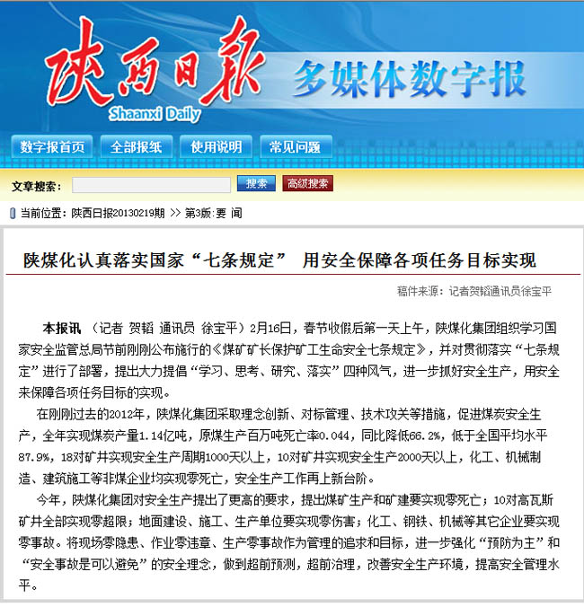 陜西日報2013年2月19日第三版 省國資委網站鏈接 http://www.sxgz.gov.cn/admin/pub_newsshow.asp?id=1005615&chid=100196