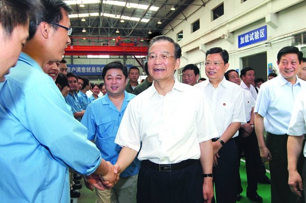 7月10日,中共中央政治局常委、國(guó)務(wù)院總理溫家寶在西安煤礦機(jī)械有限公司調(diào)研。7月9日至10日,中共中央政治局常委、國(guó)務(wù)院總理溫家寶在省委書記趙樂(lè)際和省委副書記、省長(zhǎng)趙正永分別陪同下,先后來(lái)到我省咸陽(yáng)、西安等地,訪農(nóng)戶、看超市,深入工廠農(nóng)村、物流公司,廣泛聽取基層干部群眾意見(jiàn),就當(dāng)前經(jīng)濟(jì)運(yùn)行有關(guān)問(wèn)題調(diào)研,并在西安主持召開山西、河南、四川、陜西四省經(jīng)濟(jì)形勢(shì)座談…