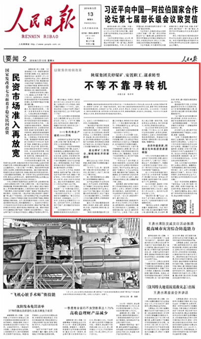 人民日報:2016年5月13日第2版(要聞)陜煤集團關停煤礦、安置職工、謀求轉型 不等不靠尋轉機(聚焦供給側改革) 本報記者 張丹華 編者按:推進供給側結構性改革是當前和今后一個時期我國經濟工作的主線,往遠處看,也是我們跨越中等收入陷阱的“生命線”,是一場輸不起的戰(zhàn)爭。堅定不移以推進供給側結構性改革為主線,著眼于矯正供需結構錯配和要素配置扭曲,全面落實“去產…