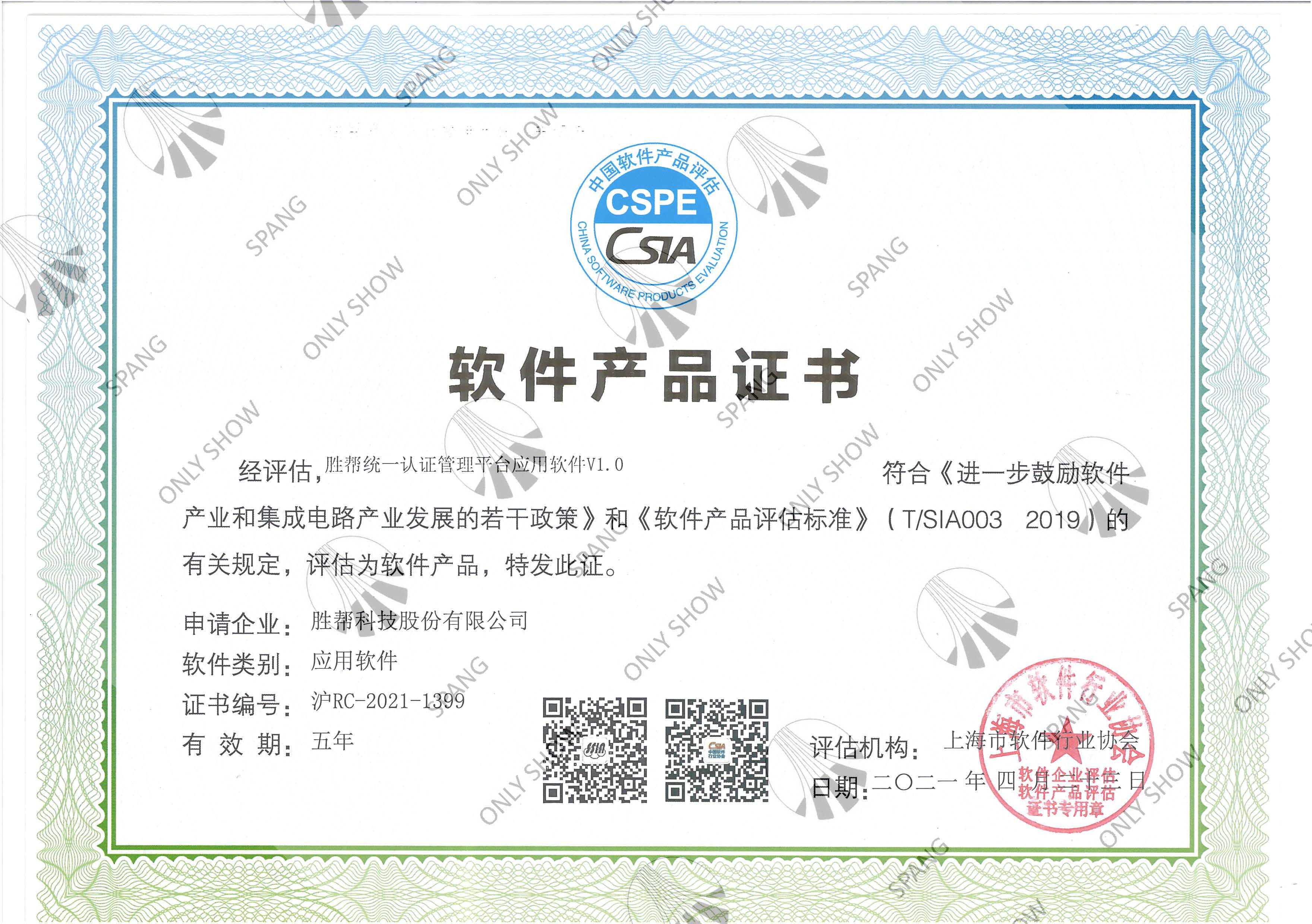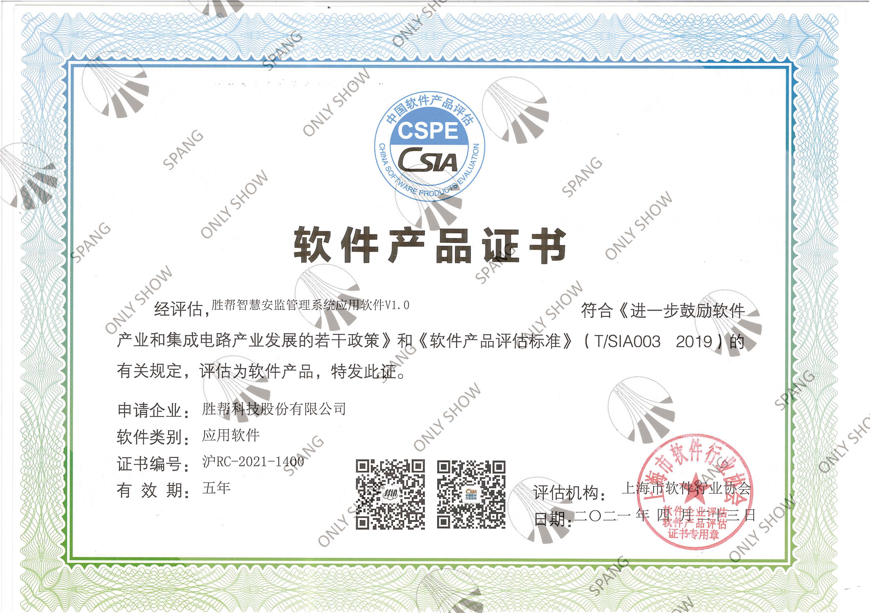 2021年4月23日,經(jīng)上海市軟件行業(yè)協(xié)會(huì)審核,勝幫科技獲得《統(tǒng)一認(rèn)證管理平臺(tái)應(yīng)用軟件》、《智慧安監(jiān)管理系統(tǒng)應(yīng)用軟件》、《智慧工作流應(yīng)用軟件》三項(xiàng)計(jì)算機(jī)軟件產(chǎn)品證書。