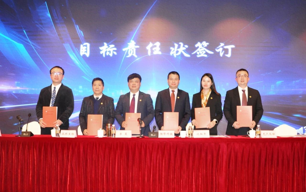 會(huì)上,勝幫科技所屬的貿(mào)易板塊、投資板塊、尤夫股份、派林生物等企業(yè)簽署了《2024年經(jīng)營(yíng)業(yè)績(jī)目標(biāo)責(zé)任書》。公司副總經(jīng)理馮建華宣讀了勝幫科技2023年度先進(jìn)集體、先進(jìn)個(gè)人表彰決定,本次會(huì)議以現(xiàn)場(chǎng)+視頻的方式召開,在主會(huì)場(chǎng)參加會(huì)議的有:勝幫科技領(lǐng)導(dǎo)班子成員、所屬各單位、各部室負(fù)責(zé)人及上??偛咳w員工,陜西分公司及項(xiàng)目現(xiàn)場(chǎng)以視頻形式參會(huì),公司副總經(jīng)理馮建華主持會(huì)議。