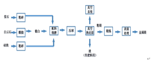 根據(jù)采用的還原設(shè)備不同,硅熱法主要可分為皮江法、馬格內(nèi)姆法、波爾扎諾法和MTMP法。由于皮江法在我國被廣泛使用,因此本文主要介紹該方法。