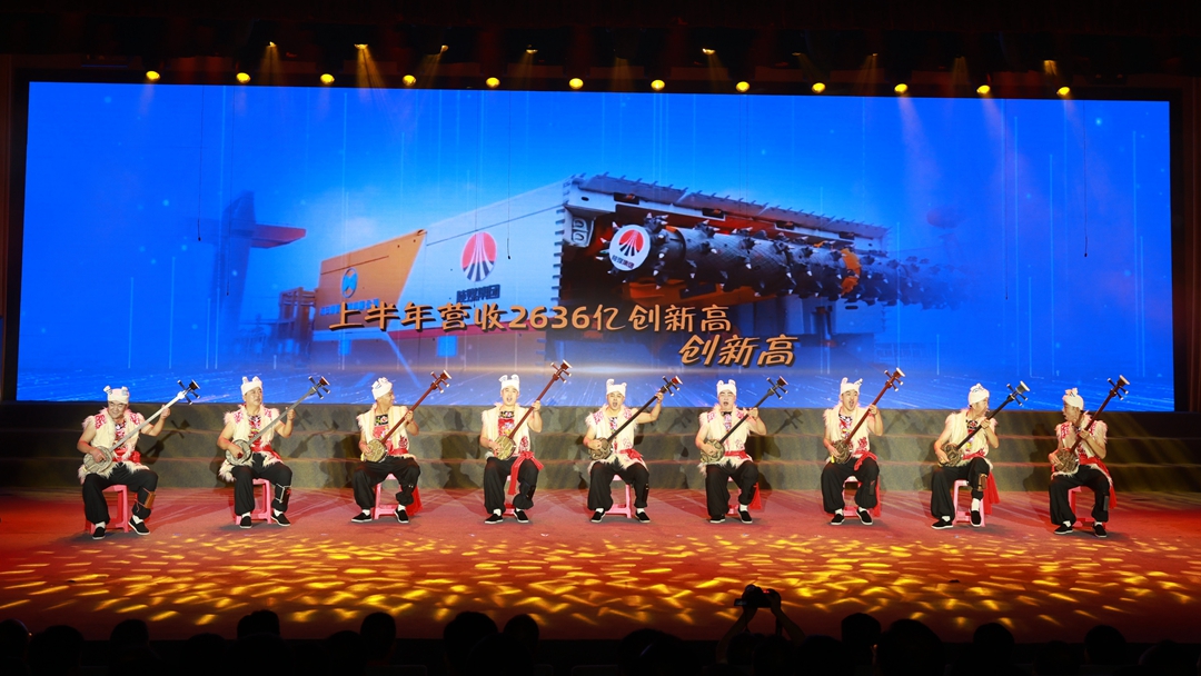 文藝匯演在播放的集團(tuán)《奮進(jìn)20年》宣傳片中拉開帷幕。從搶抓發(fā)展機(jī)遇,有序推進(jìn)大型煤炭基地建設(shè),到瞄準(zhǔn)現(xiàn)代煤化工領(lǐng)域制高點,加速打造高端煤化工產(chǎn)業(yè)集群;從大力發(fā)展煤電及新能源發(fā)電項目,提供“能源+服務(wù)+金融”綜合能源解決方案的一站式用能服務(wù),到主動承擔(dān)振興陜西鋼鐵產(chǎn)業(yè)的歷史重任,推進(jìn)鋼鐵深加工產(chǎn)業(yè)鏈完善提升、產(chǎn)品結(jié)構(gòu)轉(zhuǎn)型升級和鎂鐵釩鈦耦合發(fā)展;從打造具有礦建特色的集研發(fā)、設(shè)計、施工等為一體的大型特級綜合建筑施工企業(yè),到做強(qiáng)裝備制造業(yè),高端采煤機(jī)技術(shù)始終保持國際領(lǐng)先水平……背景屏幕上,奮進(jìn)者的步伐堅定、足音鏗鏘,一幕幕畫面閃耀著20載獨屬于陜煤人敢為人先、使命善成的榮光。