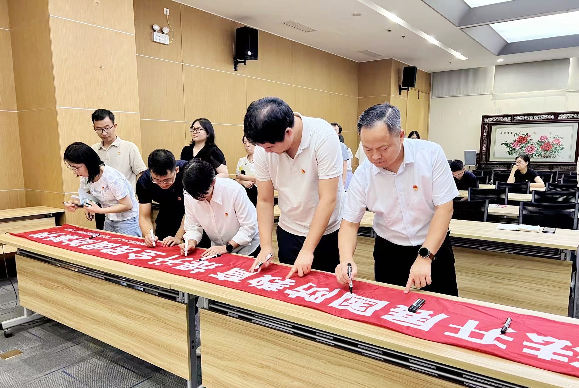 公司特別制作了國防教育宣傳橫幅,邀請全體員工在橫幅上鄭重簽名,以此作為對國防事業(yè)的莊嚴(yán)承諾和堅定支持。簽名瞬間,每位員工都仿佛與國家的命運(yùn)緊密相連,共同書寫著對國防事業(yè)的熱愛與忠誠。這一環(huán)節(jié)不僅增強(qiáng)了員工的參與感和儀式感,更將國防教育的精神內(nèi)涵深深烙印在每個人的心中。