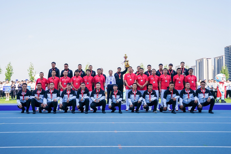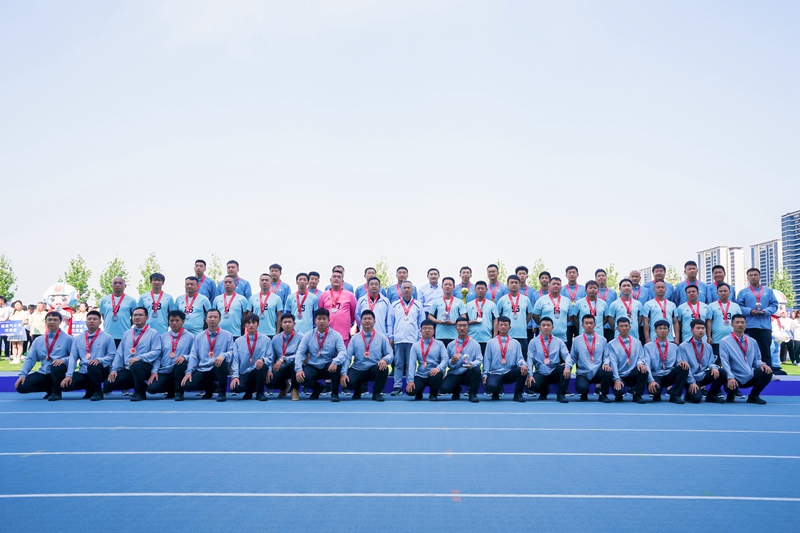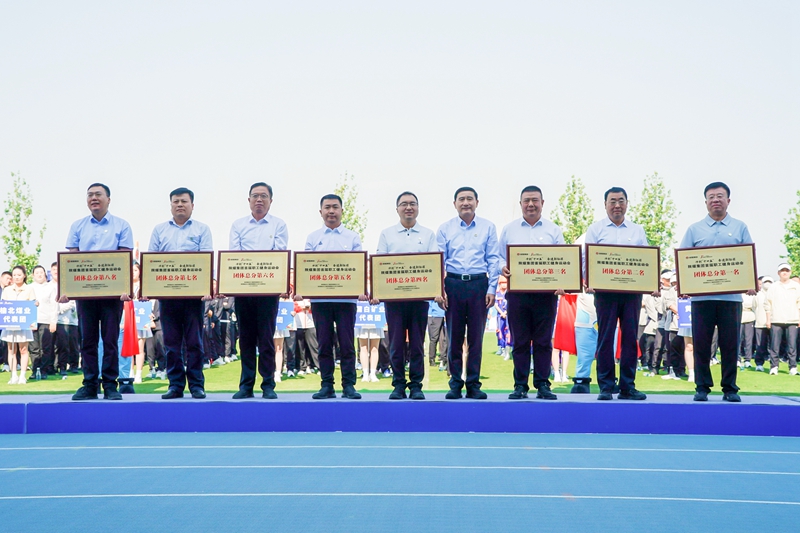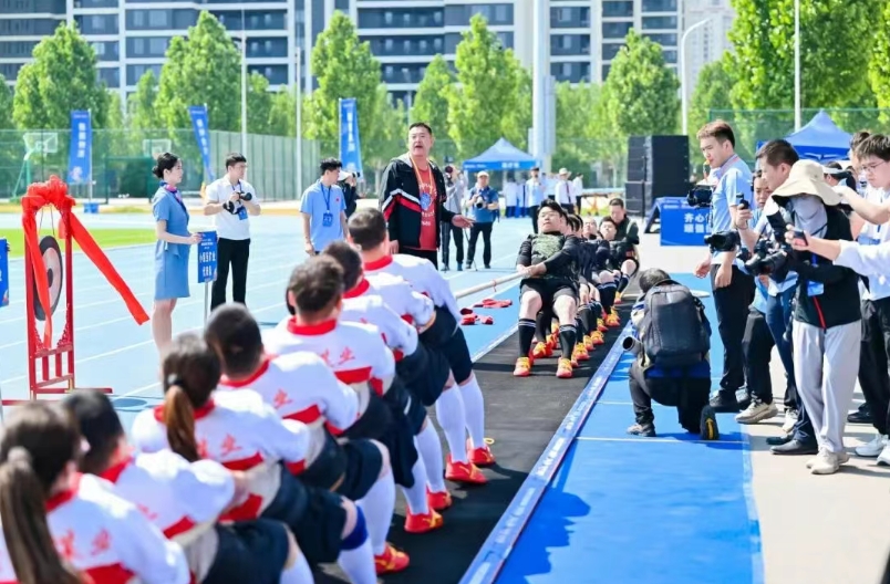 拔河賽:鳴鑼比拼 斗志昂揚(yáng)拔河賽場(chǎng),王永崗為拔河項(xiàng)目鳴鑼開賽,各代表隊(duì)緊握繩索、下沉發(fā)力,在吶喊聲中展開力量與協(xié)作的對(duì)決。