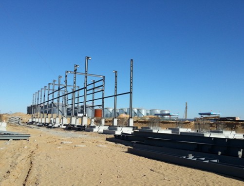 902單元壓縮機(jī)廠房基礎(chǔ)澆筑完畢,上部鋼結(jié)構(gòu)框架完成50%,現(xiàn)已停工