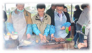 有經(jīng)驗(yàn)的“大廚”紛紛搶當(dāng)爐頭,躍躍欲試,招攬“顧客”,瞧這幾位,那是相當(dāng)專業(yè),不僅有賣相,肉串烤得也非常棒,香酥可口。除了燒烤當(dāng)然還有娛樂活動啦——麻將、撲克全上陣?yán)病?/span>