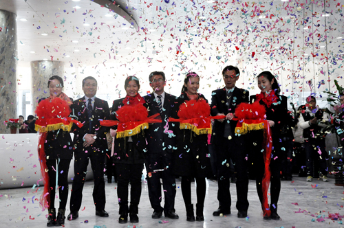隨后,伴著主持人激昂的語調(diào),公司董事長朱保平先生、總經(jīng)理沈和平先生、常務(wù)副總經(jīng)理許涵先生上臺剪彩。與此同時,禮花綻放,慶典的氣氛達到高潮。
