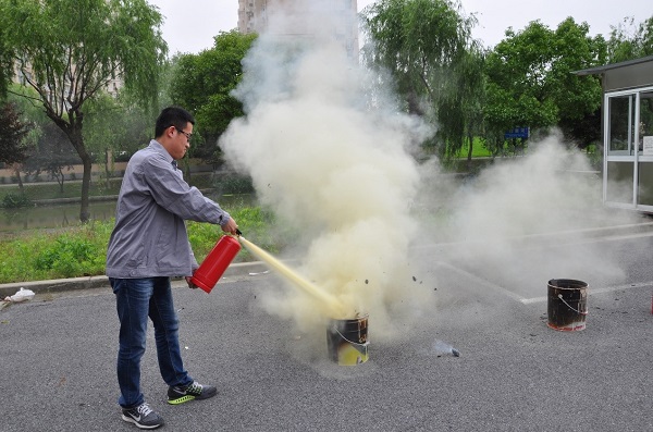 全體人員安全撤離完成后,在公司辦公樓東側(cè)空地,點(diǎn)燃了兩個(gè)火盆,由公司安全管理者代表許弘和安全工程師惠國(guó)慶為全體員工做了滅火器使用方法講解,并現(xiàn)場(chǎng)進(jìn)行滅火演示。多位員工等也在指導(dǎo)下進(jìn)行了實(shí)戰(zhàn)滅火操作,并由現(xiàn)場(chǎng)觀看人員對(duì)滅火時(shí)出現(xiàn)的問題進(jìn)行討論。