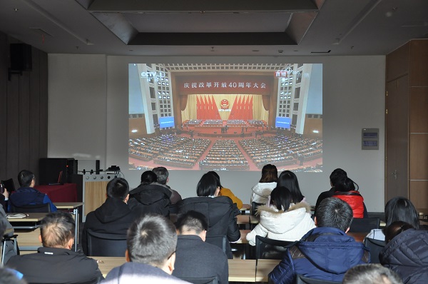 慶祝改革開放40周年大會(huì)于12月18日上午在北京人民大會(huì)堂隆重舉行。公司黨委組織全體黨員及中高層領(lǐng)導(dǎo)干部齊聚一樓培訓(xùn)室觀看大會(huì)直播?!捌饋?!不愿做奴隸的人們!……”,隨著振奮人心的國(guó)歌聲響起,大會(huì)拉開了序幕。中共中央總書記、國(guó)家主席、中央軍委主席習(xí)近平出席大會(huì)并發(fā)表重要講話。大家全神貫注、聚精會(huì)神、認(rèn)真聆聽,共同見證激動(dòng)人心的歷史時(shí)刻。
