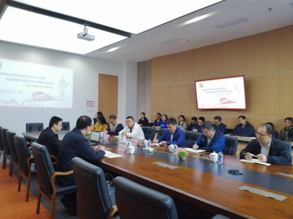 1月7日上午,在集團(tuán)公司統(tǒng)一安排下,勝幫科技召開黨的十九屆四中全會精神宣講會。集團(tuán)宣講團(tuán)帶隊(duì)領(lǐng)導(dǎo)澄合礦業(yè)公司黨委副書記、工會主席衛(wèi)建宏作宣講報(bào)告,集團(tuán)宣講團(tuán)成員澄合礦業(yè)公司黨群工作部副部長黃磊出席宣講會,勝幫科技領(lǐng)導(dǎo)班子、中層干部及職工代表參加此次宣講學(xué)習(xí)。